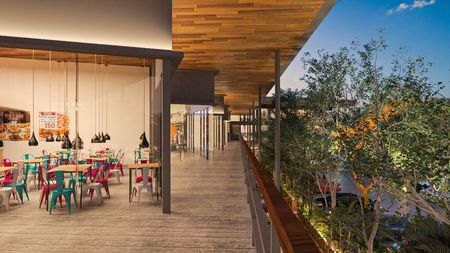 Con su innovador diseño arquitectónico, áreas de convivencia, acogedoras terrazas y amplio estacionamiento se posiciona como la mejor plaza comercial de Conkal.