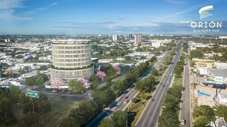 Corporativo Orión está ubicado en la Colonia Montebello al Norte de la ciudad de Mérida, el proyecto consiste en una hermosa torre circular de 14 niveles de los cuales un nivel es para locales comerciales, los 5 niveles posteriores son de estacionamiento, los 6 niveles siguientes son oficinas en 3 modelos diferentes y por último el remate de la azotea que podrá ser utilizado para eventos y el sótano que es para área de máquinas, planta de tratamiento y cisterna.