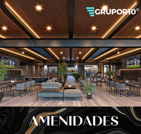 Cuenta con amenidades como: gimnasio, áreas verdes, sky bar, sala de juegos, área de asadores, roof garden, coworking, vending boutique, living room, circuito cerrado, estacionamiento techado, centro de carga para vehículos eléctricos.
