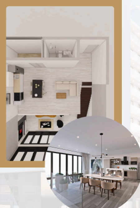 El penthouse es de 148.64 m2, el área social se encuentra en el mezanine, y las 2 recámaras en la parte baja.
