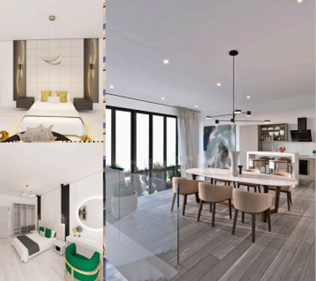 Cocina integral con cubiertas de cuarzo y carpintería de melanina, unidades de climatización tipo minisplit, boiler, parrilla, horno, campana, refrigerador, microondas, muebles de baño, paneles solares, instalaciones con un diseño moderno y elegante, iluminación led, cerradura inteligente y acabados premium.