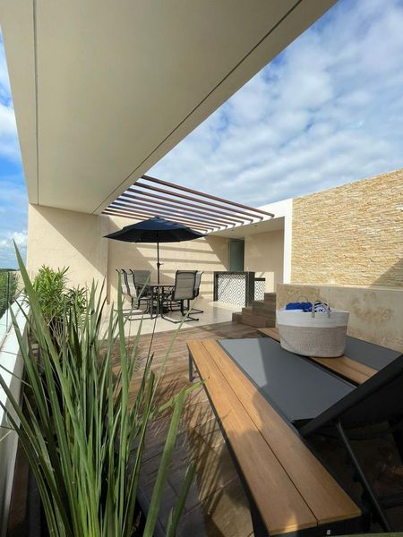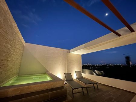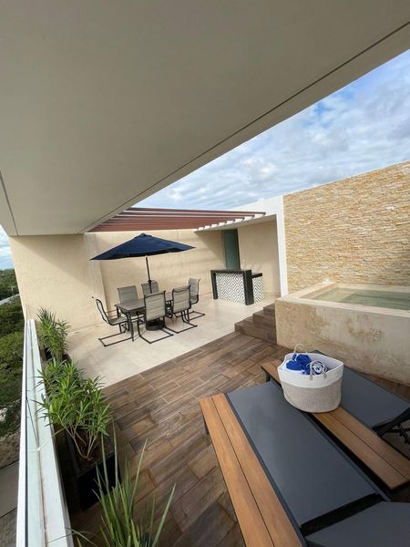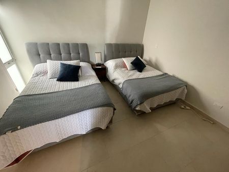 2 recámaras, la principal con vestidor y baño, la secundaria con clóset y baño.