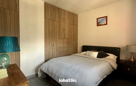 Recámara 3 con vista a puente atirantado con closet de pared y baño completo.