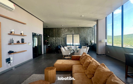 Área de Comedor y Sala conectados con vista a Chipinque.