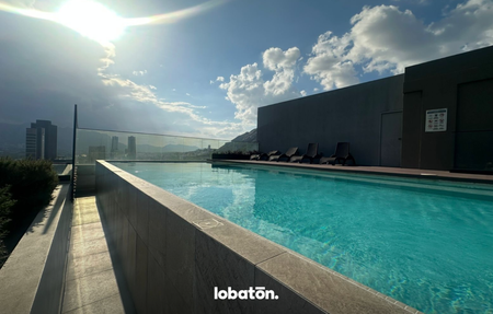 Recámara principal con terraza independiente vista a Chipinque, baño con doble lavabo, amplia regadera y distribución modificada para walk in closet extra amplio.