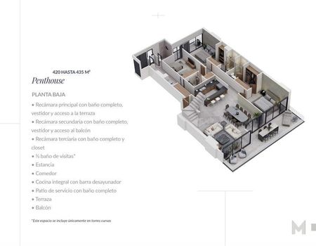 Medidas 248 + 38.41 de terraza+ 4.99 de balcón Total 420m2
