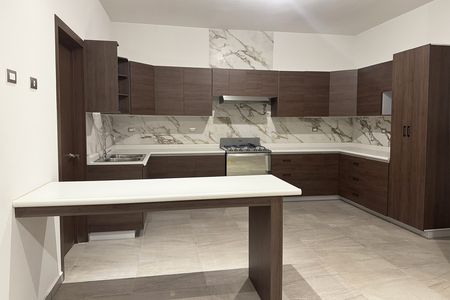 Planta Baja: Cuenta con área de sala, comedor, cocina integral amplia con estufa y campana, además de barra desayunadora, lavadera cerrada con patio de servicio, medio baño de visitas, recámara amplia con baño completo, patio trasero que incluye barra para asador y tarja, medio baño para área social exterior, pasillo lateral que comunica a la cochera para 2 autos techada.