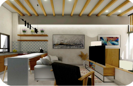 Disfruta de nuestro modelo Kin, con más de 56 metros de construcción, 1 recamara, 1 baño, cocina, sala, comedor y una terraza para disfrutar en familia.