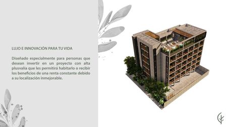 LUJO E INNOVACIÓN PARA TU VIDA Diseñado especialmente para personas que desean invertir en un proyecto con alta plusvalía que les permitirá habitarlo o recibir los beneficios de una renta constante debido a su localización inmejorable.