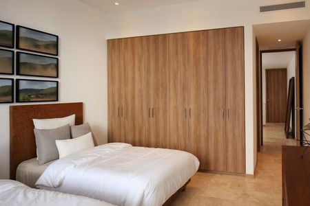 Alberca, gimnasio, áreas comunes, estacionamiento para visitantes, entrada peatonal independiente, ciclopuerto, ductos preparados para aire central y acabados de lujo como pisos de mármol, cocina con cubierta de granito y carpintería italiana.