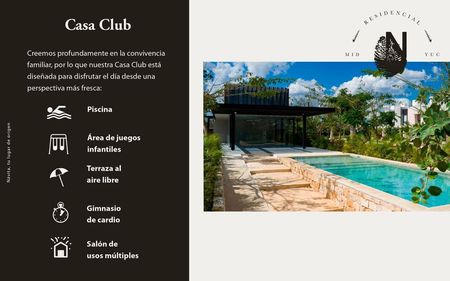 * Casa club con piscina, sala de usos múltiples, gimnasio y área infantil.
