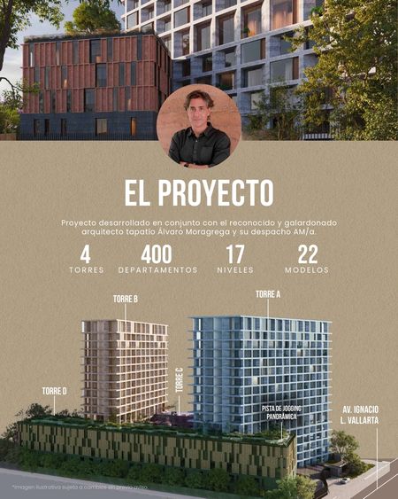 Proyecto desarrollado por Diseño y Gestión Inmobiliaria (26 años de experiencia, +4,000 viviendas) en colaboración con Fórmula Cuatro y el reconocido arquitecto tapatío Álvaro Moragrega. Cada detalle ha sido pensado para combinar estética, funcionalidad y valor a largo plazo. UBICACIÓN ESTRATÉGICA