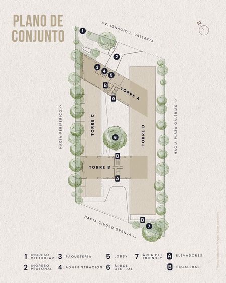 Sobre Av. Vallarta, la arteria más importante de Guadalajara, en la exclusiva zona de Ciudad Granja. A minutos de Plaza Galerías, Periférico, Andares y con acceso directo a las principales vías de la ciudad. Rodeado de plusvalía garantizada y servicios de primer nivel. MÁS DE 12 AMENIDADES PREMIUM