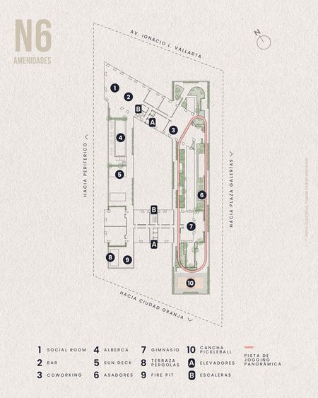 Alberca, gimnasio, coworking, cancha de pickleball, pista de jogging panorámica, fire pits, asadores, bar terraza, social room, área pet friendly, zona infantil, ciclopuerto y mucho más. Todo diseñado para un estilo de vida activo y conectado. OPORTUNIDAD DE PREVENTA