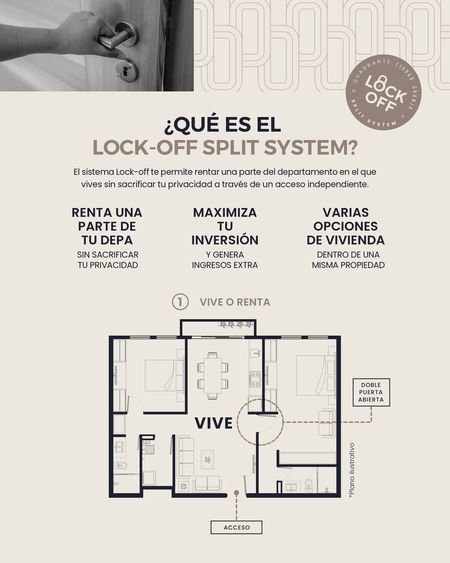 Maximiza tu inversión con nuestro innovador sistema Lock Off que te permite dividir tu departamento en dos unidades independientes. Vive en una parte y renta la otra, o genera doble ingreso rentando ambas. Esta característica única hace de Quadrante la mejor opción para inversionistas que buscan rendimientos superiores. ARQUITECTURA DE CLASE MUNDIAL