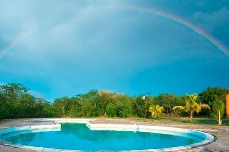 El terreno tiene una superficie de 2 hectáreas y 1,200 m2 de construcción; con 50 metros de frente sobre calle principal.