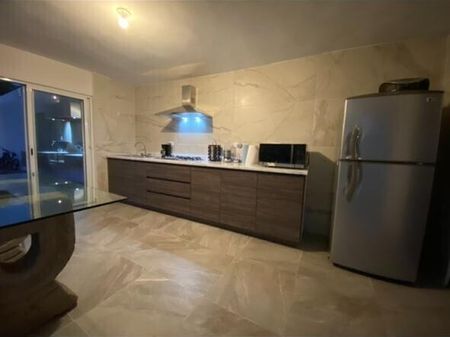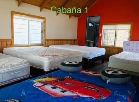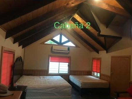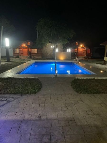 Quinta con 2 cabañas, alberca, área de palapa, área de cocina equipada, área de baños.