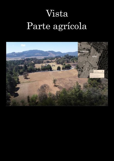 Rancho de 370,000 M2 (37 HECTAREAS) a pie de carretera, con uso de suelo agrícola, con una topografía entre un valle, semi plano, poca pendiente (10% aprox) , bosque con 80% sin arboles, cuenta con luz, agua, mina de piedra, madera y agrícola (canal del quitzamala en la parte baja) y escritura pública.