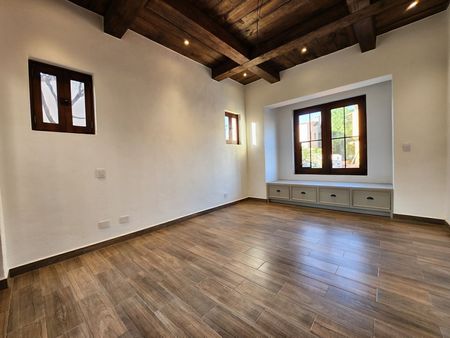 La cocina integral de ultra lujo, con sobres de mármol y maderas finas, es el sueño de todo chef, mientras que la terraza techada con vista al hermoso jardín y chimenea exterior de piedra es perfecta para cenar al aire libre. El jardín en sí es impresionante, con un hermoso árbol que le da un toque de naturaleza. El dormitorio en suite, con chimenea, cama de día, vestidor y baño completo de lujo, es un oasis de relajación. Dos garajes cubiertos con puertas automáticas de madera completan la planta baja.