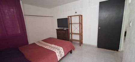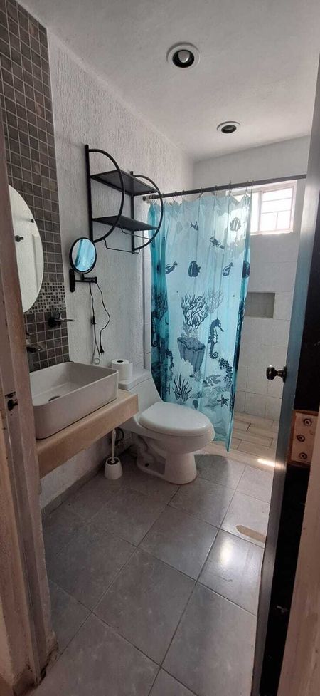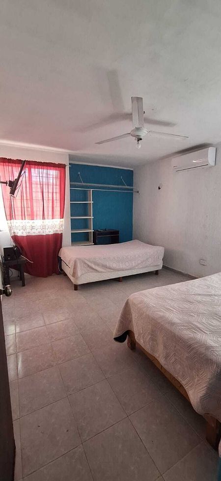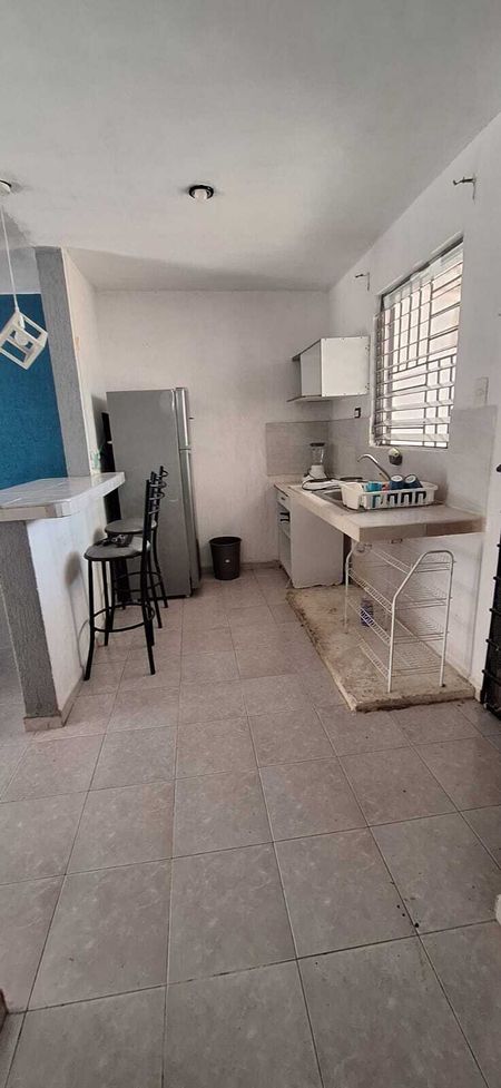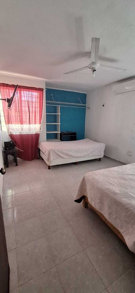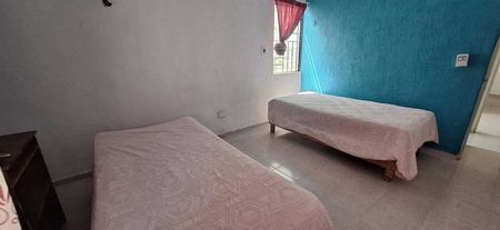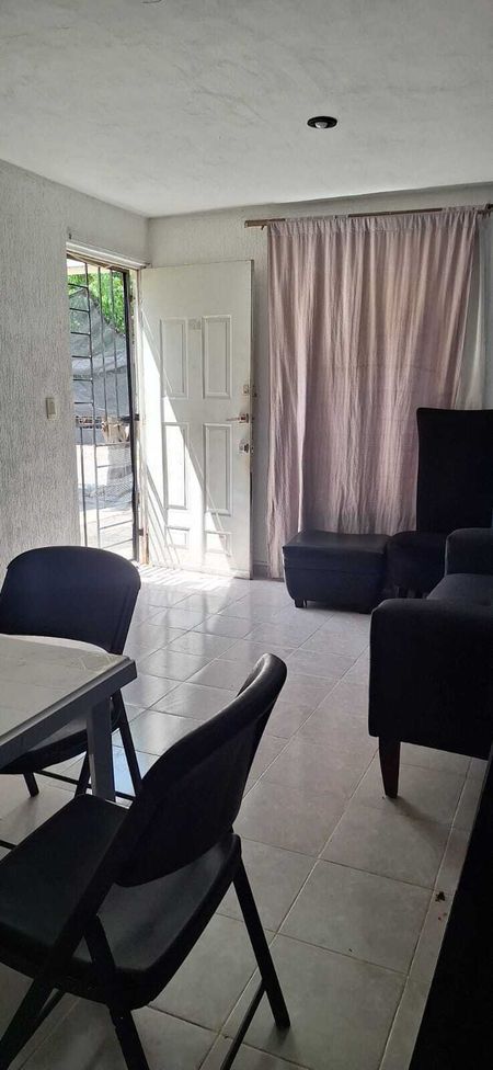 Casa en renta en juan pablo de un piso AMUEBLDA cuenta con dos habitaciones cada una con 2 camas una matrimonial y 1 individual climatizadas, ventiladores, 1 baño, sala comedora corrido, mesa con 4 sillas, cocina con estufa eléctrica, refrigerador patio trasero techado, portón en pasillo,