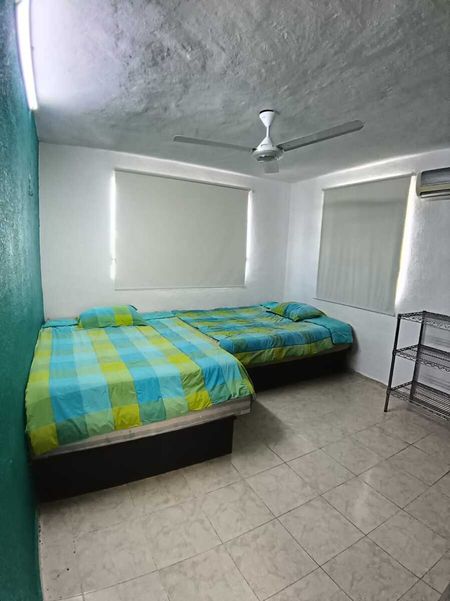 La casa tiene sala con muebles ventilador, comedor con A/A, cocina con estufa y refrigerador, 1/2 baño de visitas, amplio patio con piso, bodeguita y garage con reja para dos autos. En planta alta dos habitaciones con clima, closets y ventilador y tres camas y un baño completo.