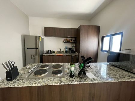 - Cocina Integral con parrilla eléctrica, con meseta de granito y gabinetes superiores e inferiores