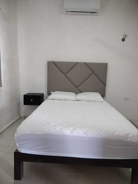 Departamentos de 2 recamaras, con solamente 1 recámara amueblada, misma que cuenta con cortinas, aire acondicionado y abanico.