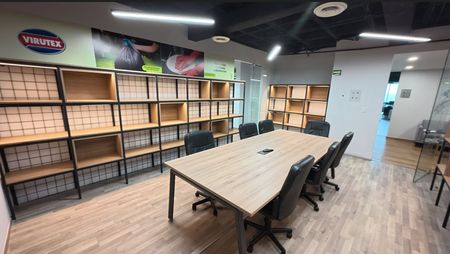 Distribuido de las siguiente forma Recepción, dos áreas abiertas , para 10 colaboradores cada uno, dos privados,
