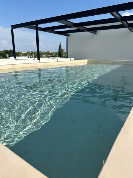 Rooftop con amplia terraza, camastros, baños y Piscina
