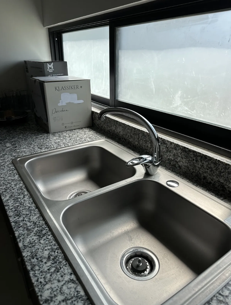 Cocina equipada con gavetas, barra de servicio, parrilla eléctrica de 4 quemadores y