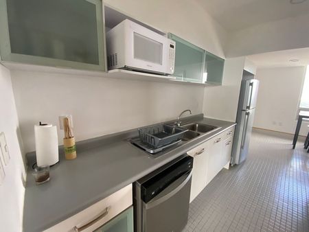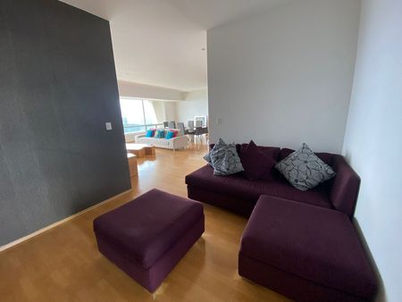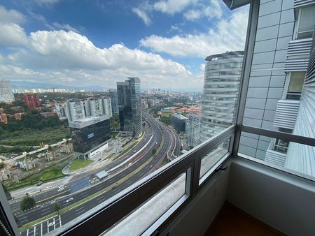 Renta departamento amueblado en Av Santa Fe, consta de 175 Mts, los cuales se distribuyen con 3 rec, 2.5 baños, sala, comedor, cocina, área de lavado, cuarto de servicio, 2 lugares de estacionamiento.