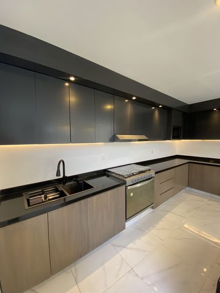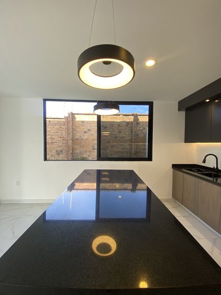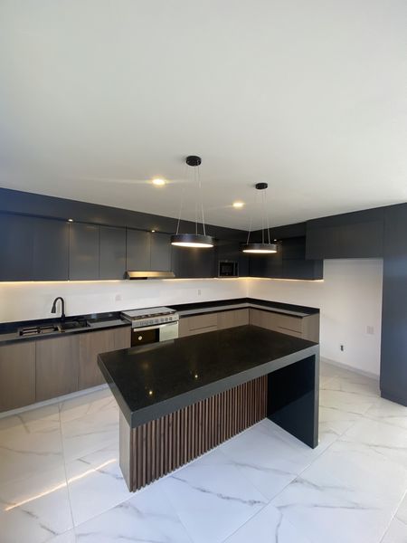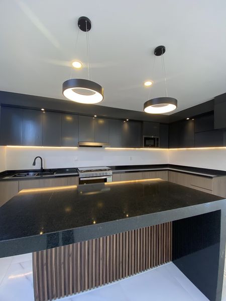 -Tiras led en contra barra, barra de cocina y fachada principal
