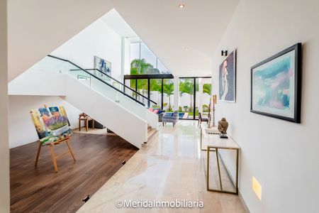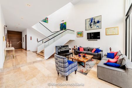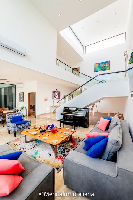 Recámara principal con closet vestidor, balcón y baño completo, recámara secundaria con clóset vestidor y baño completo, recámara terciaria con clóset vestidor y baño completo, sala de TV, vestíbulo.