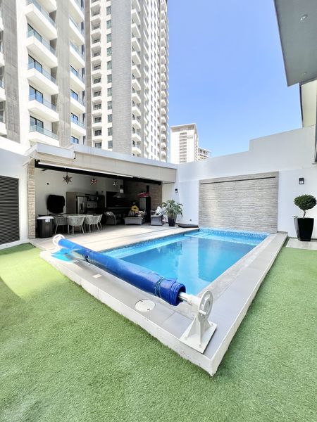 Alberca con área social y cocina completa