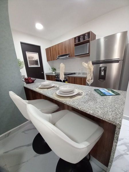 Modelo Terra, un departamento de 2 recámaras que viene equipado con cocineta, walk-in closets, climatizado y con área propia para estacionamiento.