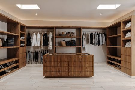 Recámara principal con walk-in closet e isla, baño con lavabo doble, regadera y tina