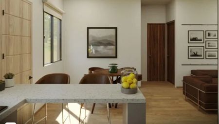 Este es un departamento de 67m2, 2 recámaras, 1 baño , estancia y cocina abierta+ 6m2 de terraza extra interior en PB.