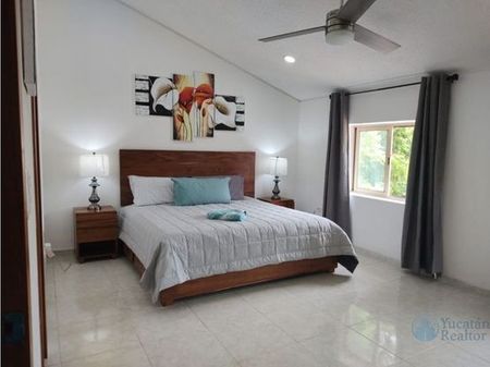 Nota: La casa se entrega como se aprecia en las fotos equipada y amueblada, cuenta con purificador y suavizador de agua, totalmente climatizada 7 A/C. Todas las recamaras cuentan con bases de cama y burós de madera de Tzalam, colchones de excelente calidad, closets y vestidores completamente con carpintería y buenos acabados, baños con barras de granito y cancelaría de cristal.