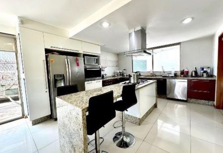 Sala, comedor, cocina integral, estacionamiento techado para 8 autos.
