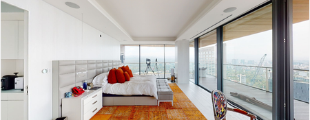 La recámara principal te ofrece una vista privilegiada de 180 grados a Polanco, el Auditorio Nacional y el Bosque desde una terraza impresionante. Además, cuenta con una oficina, un amplio baño con la regadera más bonita que he visto en mi vida y un vestidor para él y para ella.
