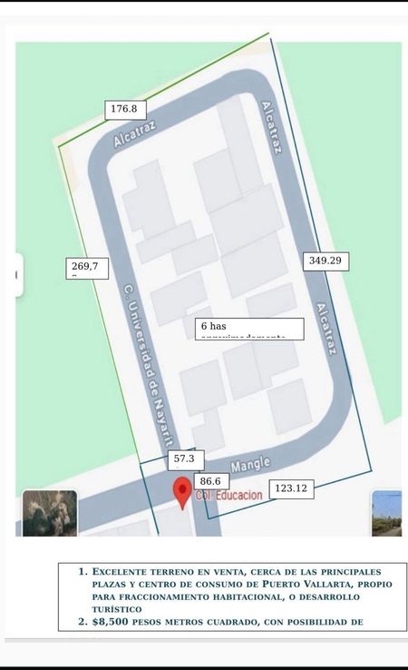 Al poniente, calle Universidad de Nayarit 269.70 metros