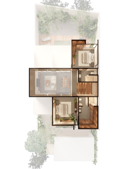 · Jardín interior con vista a la cocina