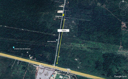 Terreno sobre carretera Sahe a 700m de la Carr. Mérida - Cancún. Con 150m de frente.