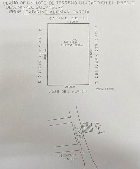 Ubicado en 1,000m2 de superficie, frente de 25m y fondo de 40m. No cuenta con servicios, esta a pocos minutos de la zona urbana.