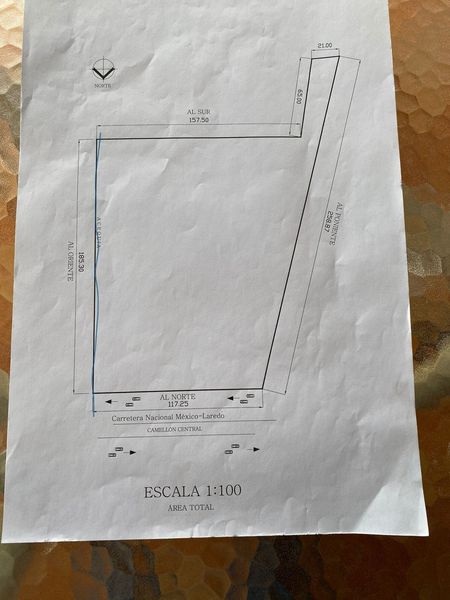 Terreno con 117 metros de frente hacia la carretera de acceso a Montemorelos. Se ofrece como un solo lote con la opción de lotificar según las necesidades del cliente.