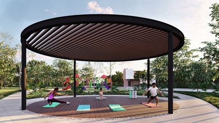 AMENIDADES: Restaurante, terraza techada, bar, alberca familiar, alberca para adultos, canal de nado semiolímpico, gimnasio, área de lockers, juegos infantiles, kids club, junior club, coworking, canchas de pickleball, canchas de pádel, cancha multifunsional, salón para 200 personas, jardín para eventos área de asador, área de picnic, área dre joga, pista de jogging.