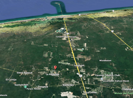 Ubicado sobre la Carretera Kikteil - Komchén, a 4 km (aprox) de la Carretera Mérida - Progreso, a la altura del Club de Polo.