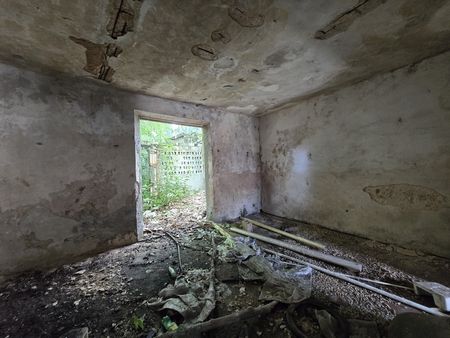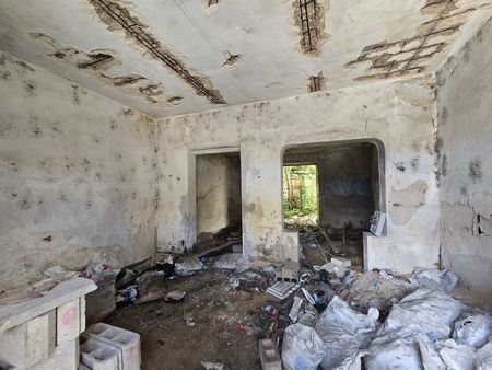 Fachada y construcción 45 m2 que se compone de 2 crujías de mampostería y amplio terreno con arboles grandes.