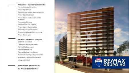 erreno Residencial ubicado en zona dorada, rodeado de proyectos verticales a un excelente precio de venta. El terreno consta de 4,582.144 m2 de superficie a $650.00 dlls el m2. La venta del terreno incluye un proyecto con permiso de construcción no vigente listo para actualizar. El proyecto consta un complejo de 71 departamentos de 1,2 y 3 recamarás que van de los 64.00 m2 a 140.00 m2 de construcción totalmente equipados con closet, cocina integral, pisos laminados y 2 estacionamientos techados para cada dept. con bodega privada, asi como acceso a la múltiples áreas comunes como son: alberca climatizada, sufi deck, dififier lounge equipado, fitness center, sky lounge, yoga deck, fogateros, area de lectura, asadores, areas verdes con zona pet friendly. Agenda tu cita ya!