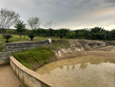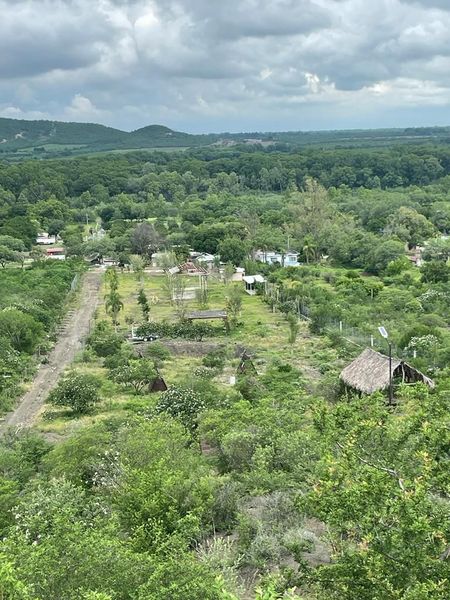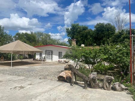 Propiedad de 25 Hectáreas, con servicio de luz 220, se ubica a pie de carretera, se puede recorrer todo el terreno desde su interior y también tiene acceso alterno, cuenta con una represita, un papalote, una noria, dos fosas sépticas, dos pozos artesanos de agua, una casa con tres cuartos, dos baños, cocina, comedor, sala, cuarto de tele y chimenea, una cocina al exterior rústica, casita de los trabajadores, un área planeada para eventos, una estructura para músicos, 8 baños centrales, la preparación en estructura para techar, tiene en la falda de la loma 6 cabañitas de 2 por 2 de madera que ocupan mantenimiento.